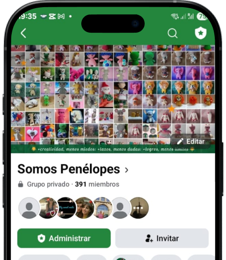 Somos Penélopes es una comunidad en Facebook que reúne a todas las amantes del mundo de los amigurumis. Fue creada y pensada para que no te sientas sola en tu camino de aprendizaje al tejer amigurumis.